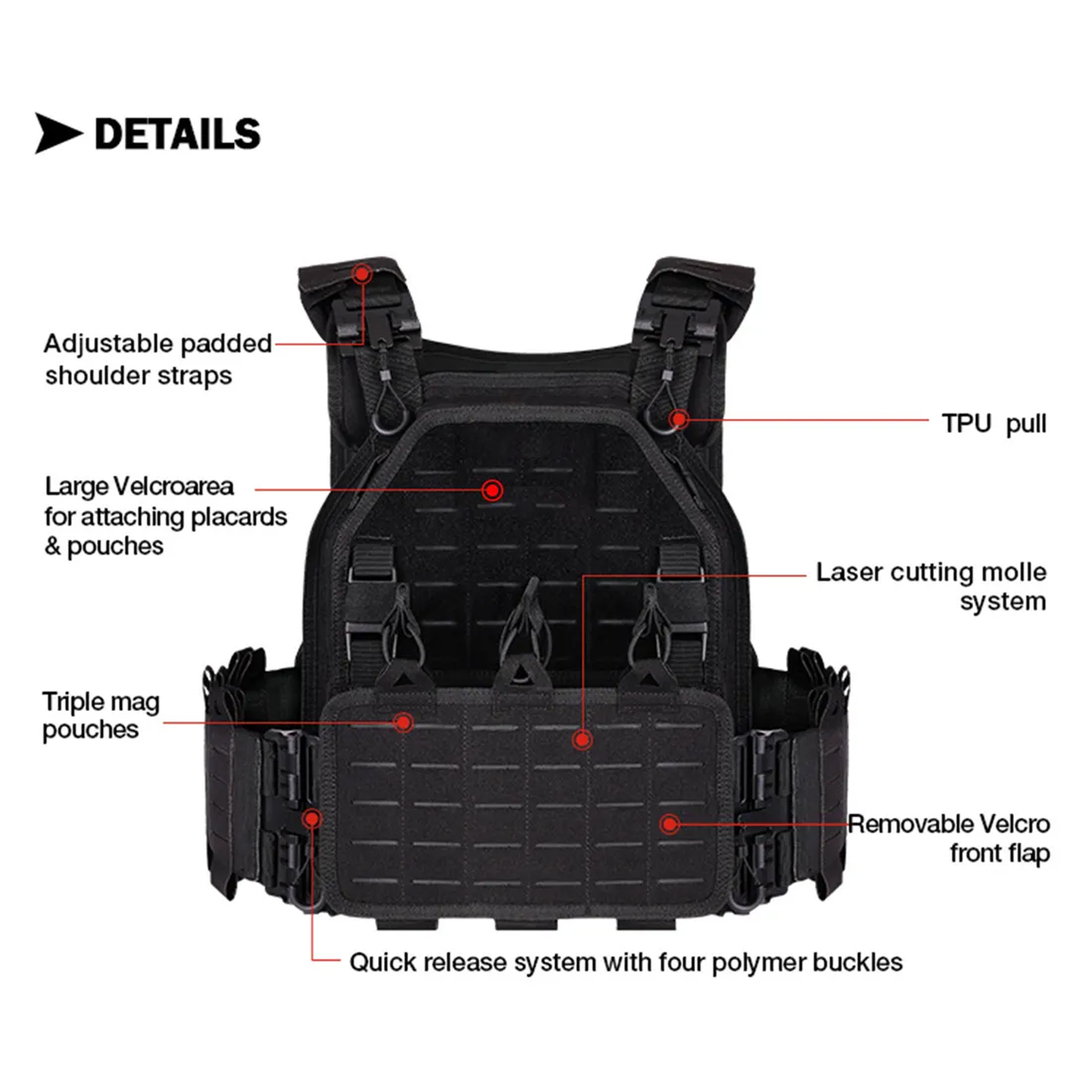 Removable triple magazine pouch at the front accommodates 5.56 and 7.62 magazines