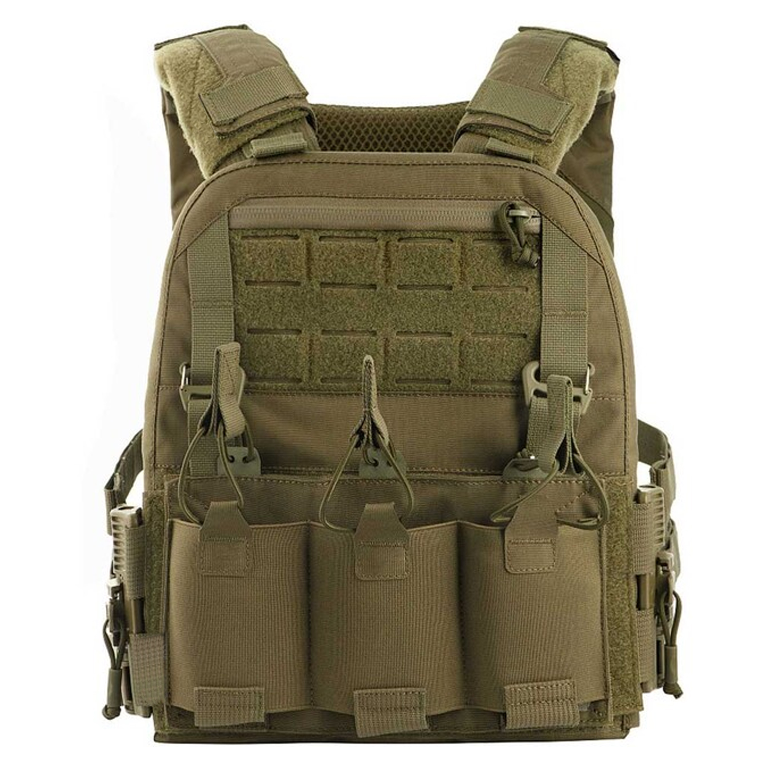 Equipped with front and rear plate pockets compatible with SAPI ballistic plates (size S/M, up to 31.8 x 24.1 cm)