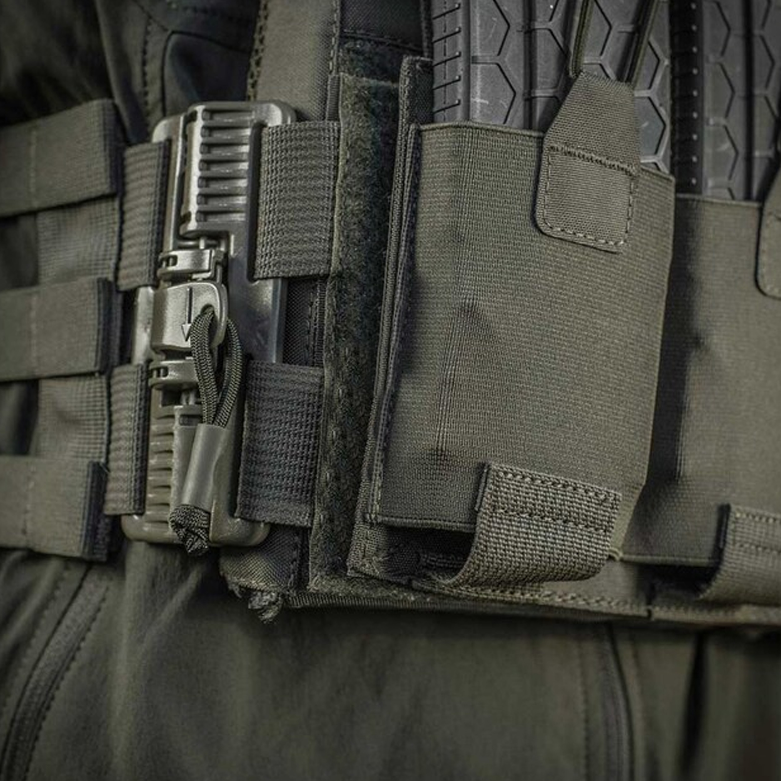 Elastic Shock-Cord retention system keeps magazines secure while allowing quick access