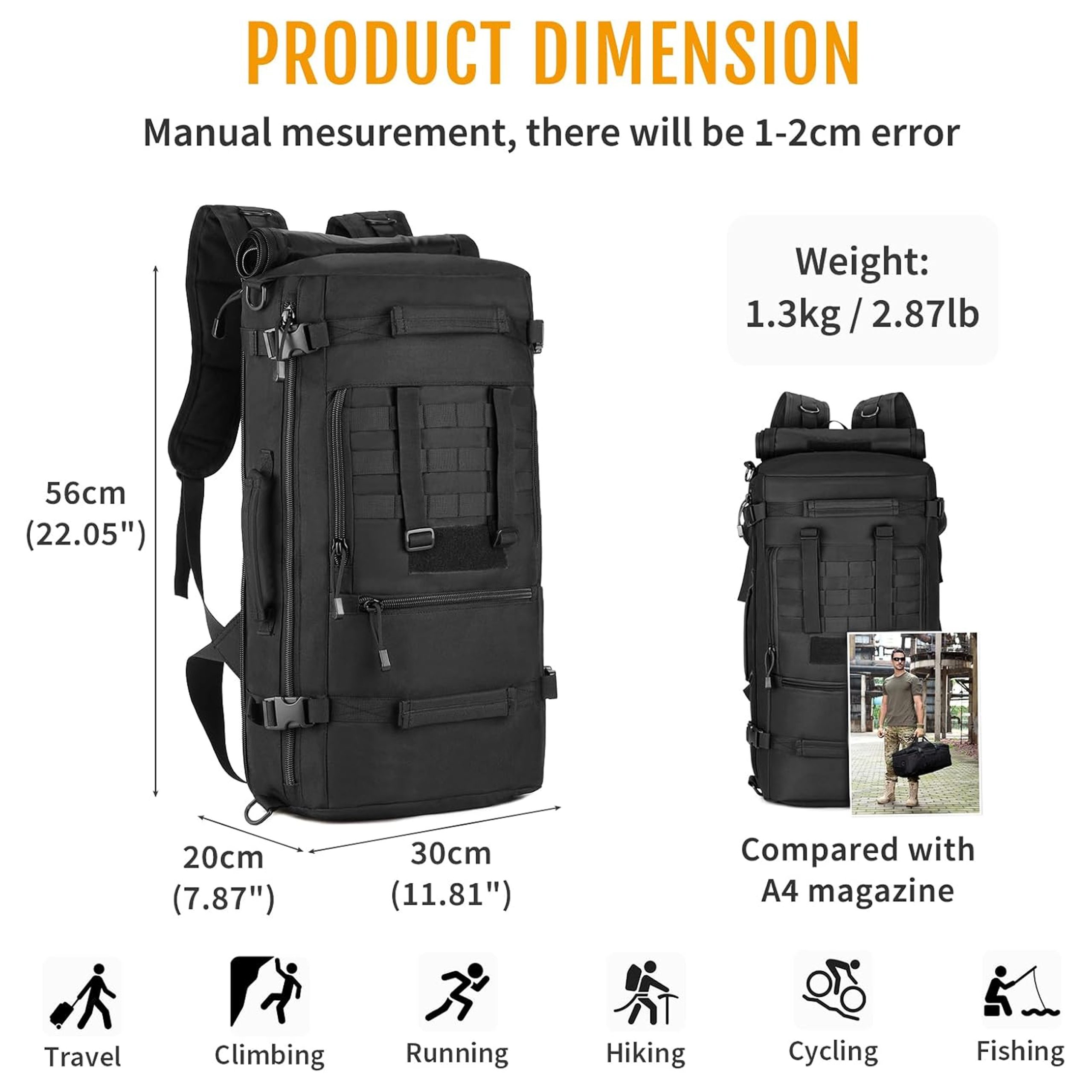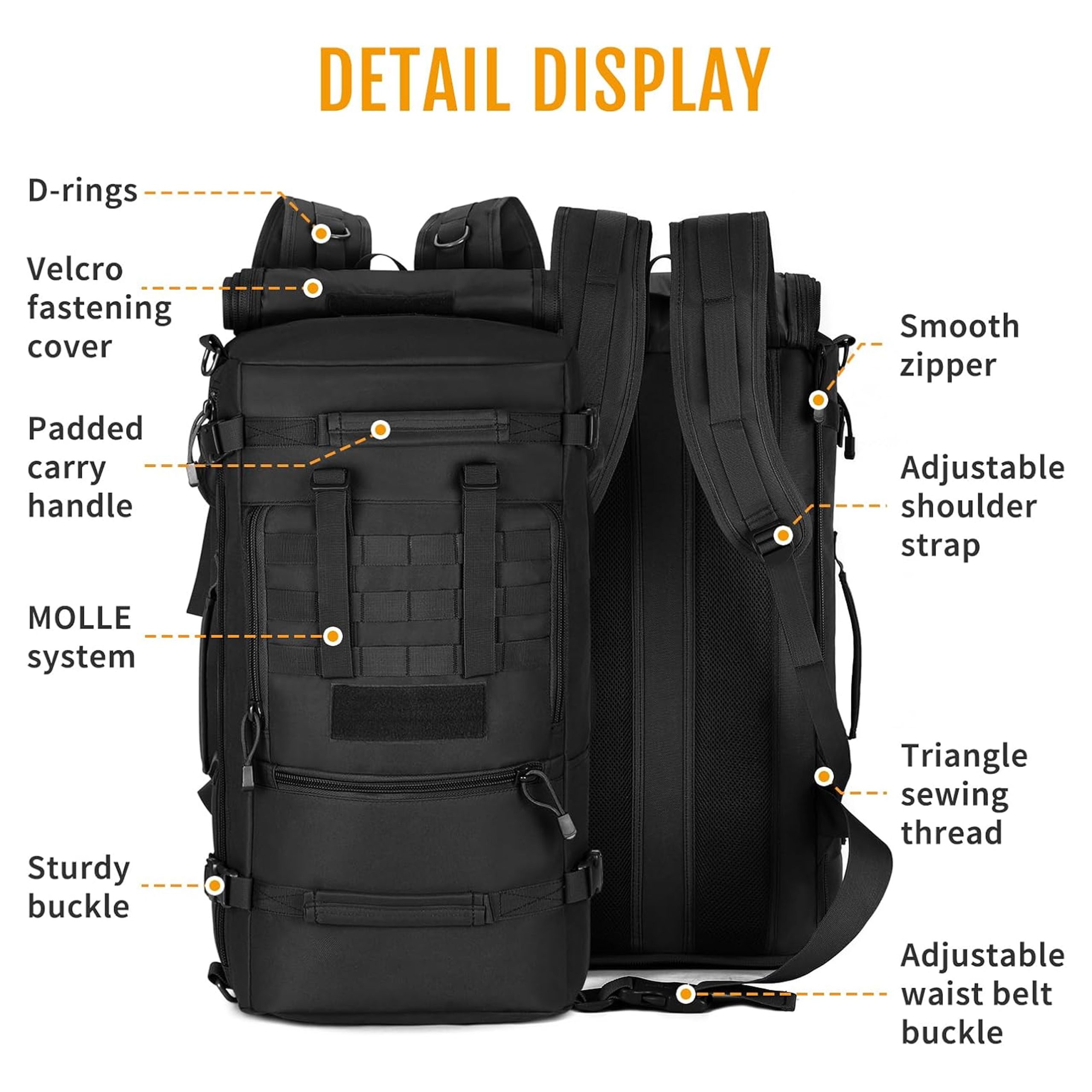 High Capacity & Durable Material: Made of high-intensity military-grade nylon, this 50L tactical backpack is scratch-resistant, fade-resistant, and built to last.